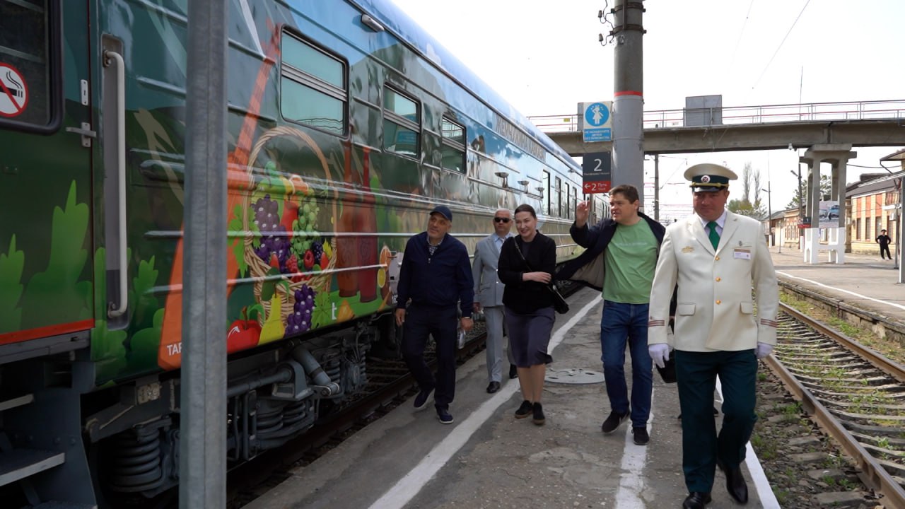 От имени главы Дербента со словами добрых пожеланий к гостям обратился заместитель главы администрации города Видади Зейналов. Представители РЖД и Федеральной пассажирской компании пригласили дербентцев осмотреть туристический поезд и рассказали о том, что за три года курсирования поезд перевез более 10 тысяч пассажиров. У каждого вагона уникальное оформление как внутри, так снаружи.