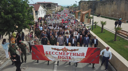 В рамках празднования Дня Победы над фашистской Германией сегодня, 9 Мая, тысячи дербентцев и гостей города вышли на традиционную акцию «Бессмертный полк», пройдя от улицы Мамедбекова до воинских захоронений.