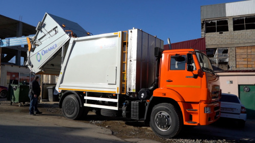 Автопарк городского автомобильно - технического хозяйства Дербента пополнился мусоровозом с функцией мойки контейнеров. Машина собрана в России.