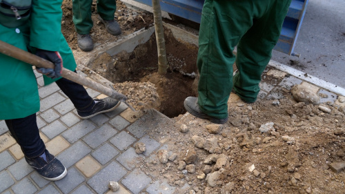По всей протяженности отремонтированной улицы будут посажены платаны, уже подготовлено 90 лунок.