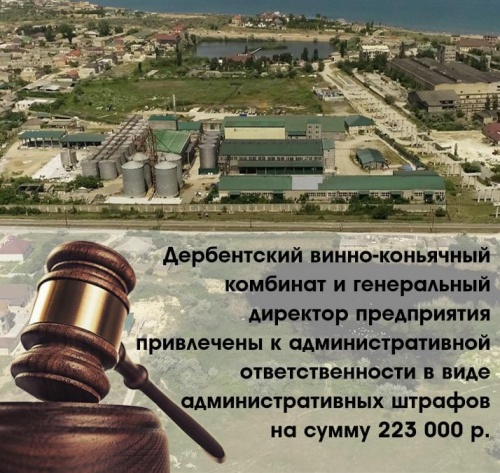 Дербентский винно-коньячный комбинат и генеральный директор предприятия привлечены к административной ответственности