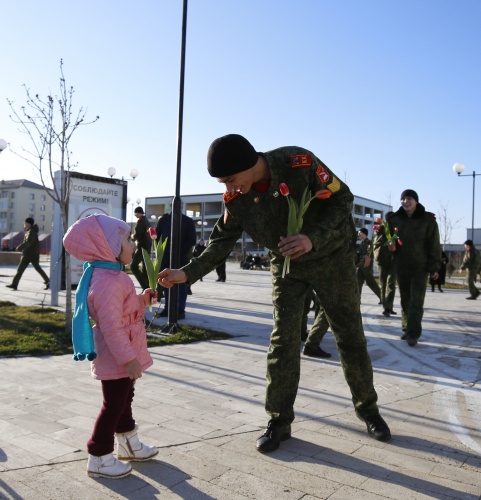 Кадеты Дербента поздравили женщин с 8 Марта необычным способом