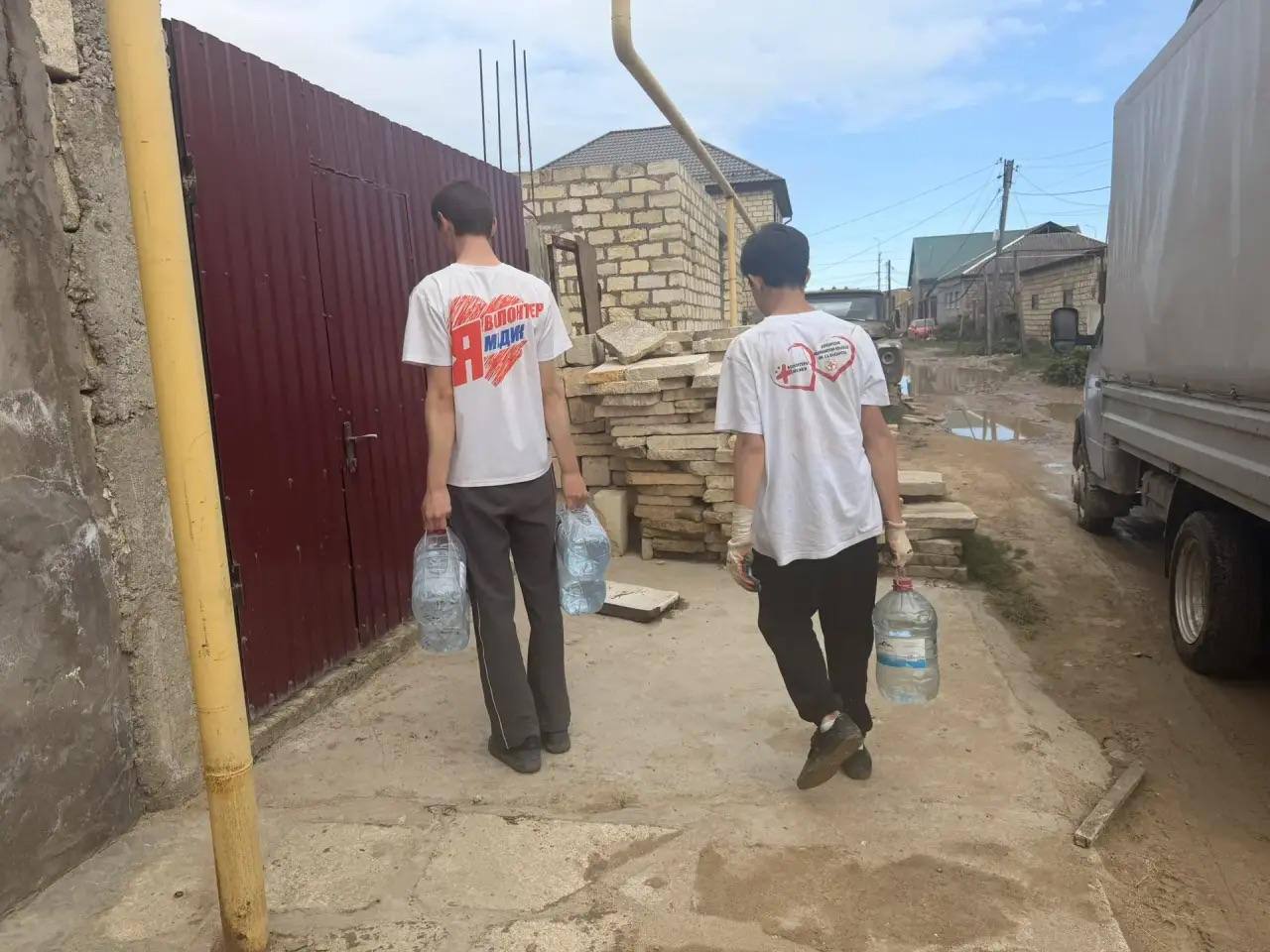 Волонтеры продолжают раздачу воды жителям, пострадавшим во время паводков