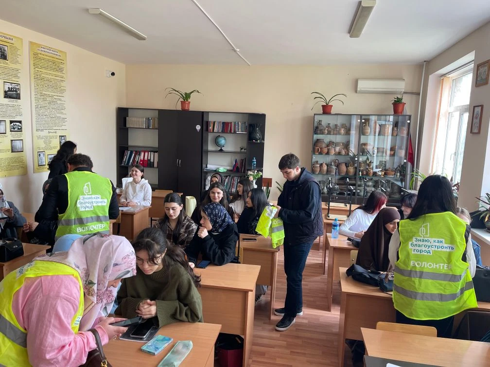 В Дербенте волонтеры проекта «Формирование комфортной городской среды» (ФКГС) перешли к активной фазе информирования жителей. Спустя три дня после старта голосования добровольцы ФКГС организовали выезды в образовательные учреждения города для привлечения молодежи к голосованию за преображение городской среды.